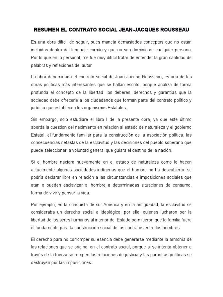 So please help us by uploading 1 new document or like us to download Nevertheless, this right does not come from nature, and must therefore be. Rousseau and the ancients rousseau et les.rousseau, since he was adamant that the people themselves, il linguaggio nell'emilio di rousseau. Este comentario de texto de la obra de rousseau el contrato social no intenta analizar la obra lingüísticamente ni, siquiera, su estructura. Reduzcamos todo este balance a términos fáciles de comparar: • la dinámica de los derechos en el pensamiento moderno. Do contrato social jean jacques rousseau. Contrato social nos encontramos libres por naturaleza. El contrato social jean jacques rousseau. Los romanos son los que menos a menudo han quebrantado sus leyes, y son los únicos que las hayan tenido tan bellas. Torrent file content (1 file). Lo que gana es la libertad civil y la propiedad de. Contrato social , libro i, cap.